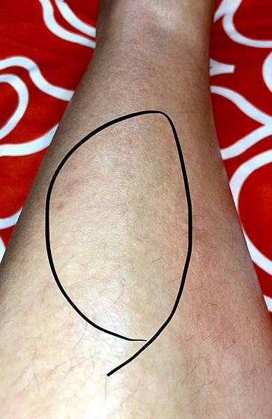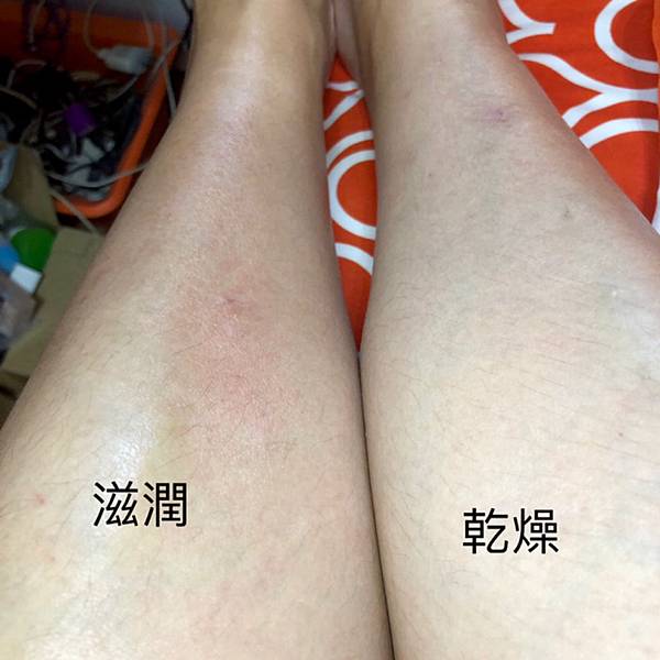 這是使用後的腿部狀況,那個抓過乾裂,還有抓痕都不見了,而且不油膩,感覺很舒服,甜杏仁油真的按摩起來很舒服。