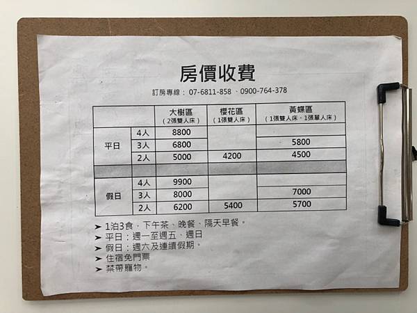 門口就是入住登記與入園門票收取處,住宿費用就在上面的照片。