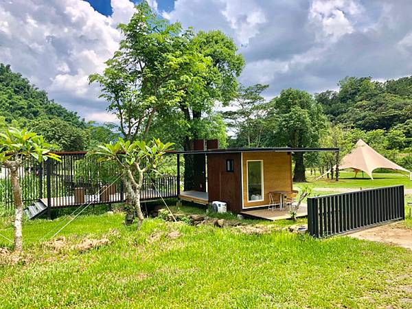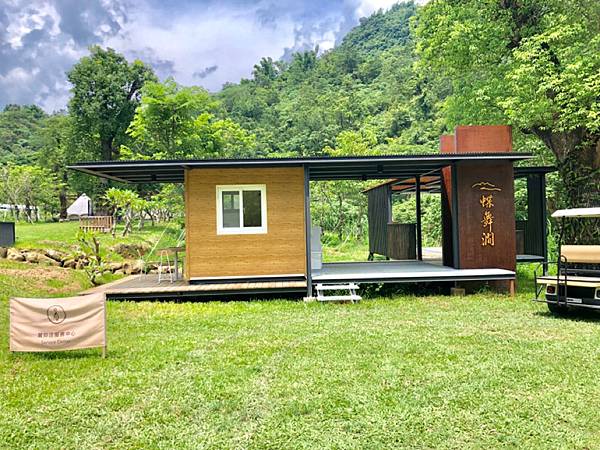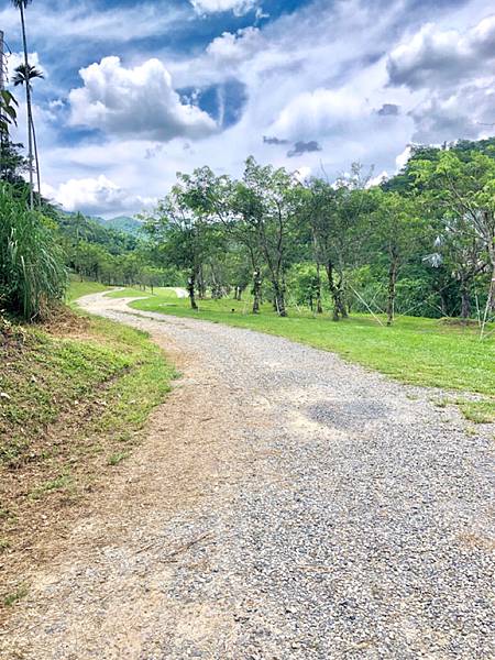 進入園區後,看到這樣美麗的景色,讓我心情為之放鬆,綠油油的樹木與藍天白雲,旁邊則是山,感覺像在森林做森林浴一樣,蝶舞澗的環境在山邊,車子又少,空氣又清新,我的過敏一到這樣的環境完全都沒發作,我真的好喜歡這樣的度假環境。