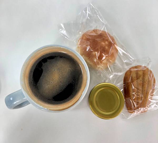 了解了下午茶的餐盒都是蝶舞澗/蟬說:瀰蝶源記,手工料理的美味食物,有麵包、瑪德蓮及薑餅乾跟南投來的好茶葉,兩瓶金萱茶跟兩瓶烏龍茶,我們覺得下午茶不來一杯咖啡就不是下午茶,所以我們又另外花錢點了一杯熱美式咖啡,一杯120元。