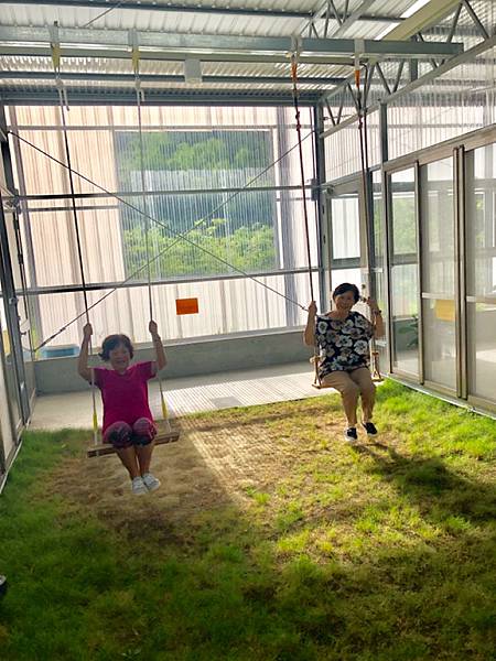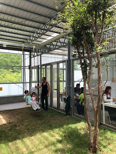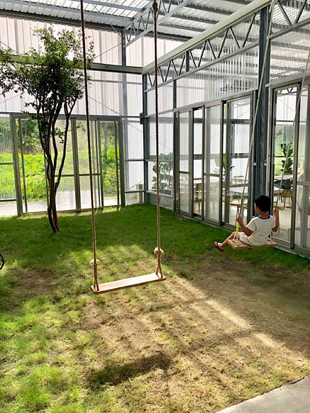 咖啡廳跟餐廳中間還有一塊小溫室,他就在室內,但是沒有空調,裡面有一棵樹還有兩個鞦韆。