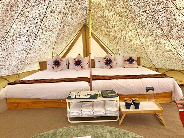 我帶了自己跟三個人,所以我們是住下面比較大的蒙古包,有一大雙人床跟兩單床合併成一大雙人床。