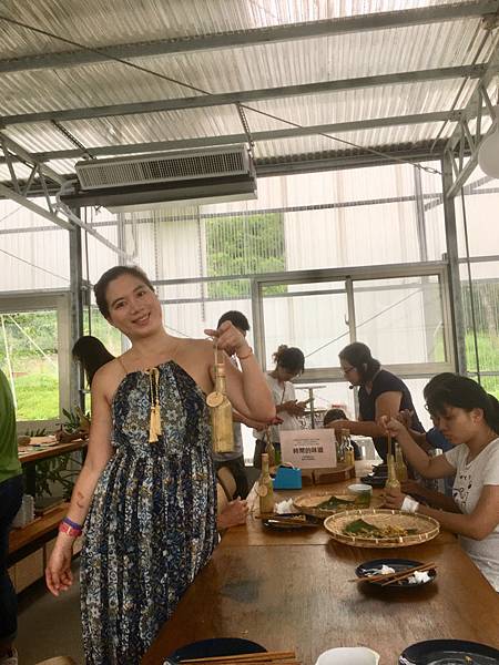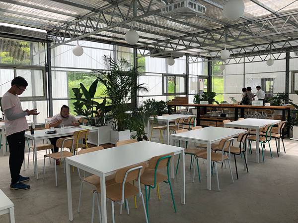 體驗完高麗菜乾後也剛好到了傍晚18:30了,就是我們用晚餐的時間,我們就移駕到溫室餐廳,這裡是我們的座位,園區會分配桌子給來住宿的用餐,因為這樣才能掌握用餐人數與主餐份量。