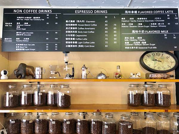 價目表跟每天烘出來的豆子,按照號碼來提供咖啡給客人。