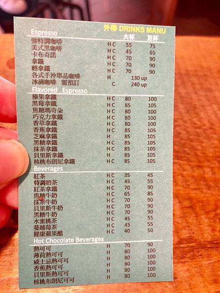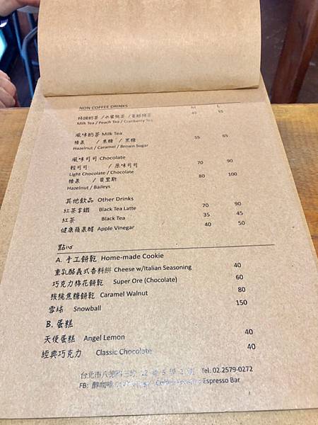 這是醇咖啡的菜單,他們只有咖啡跟可可飲品還有手沖之外,還有一些餅乾跟點心。