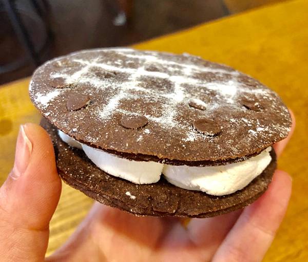 巧克力棉花糖夾心餅乾配上特製美式咖啡,就是一整個超搭!讓我很愛。
