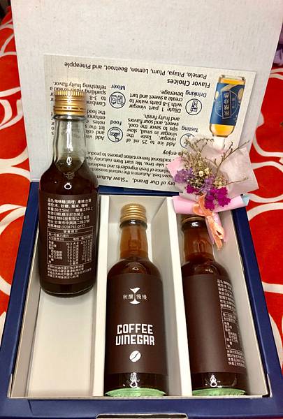 勁揚生物科技股份有限公司的包裝也讓小編覺得很用心,外面的紙盒超精美,打開後裡面的禮盒也很漂亮,當初看到咖啡醋禮盒時又看到產品的履歷與生產地,就讓小編心動,下單購買,收到商品也讓小編我覺得廠商的用心。