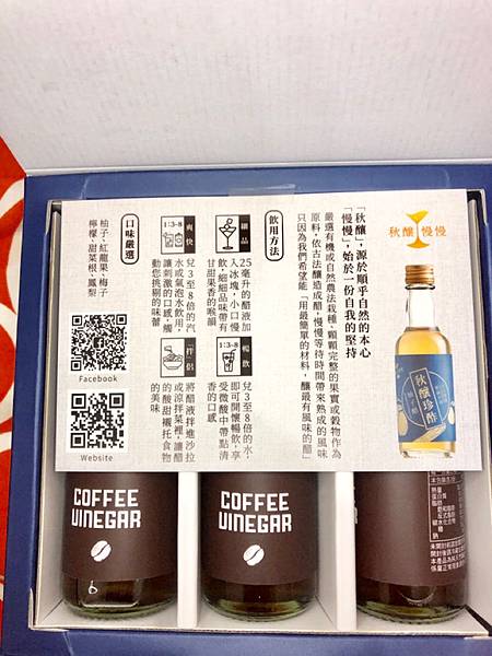 再翻開小卡看到,三小罐玻璃包裝的咖啡醋,容量:50ml。