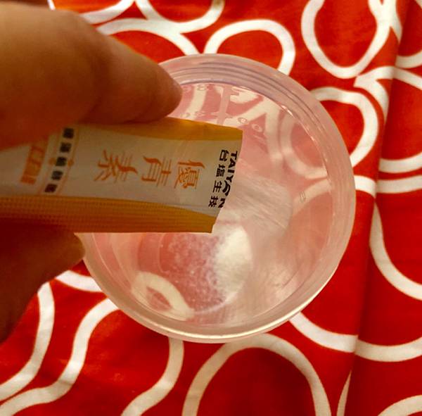 白色的粉末,小編喜歡粉末的東西再搭配水食用時,小編都習慣用泡的,當水喝!所以,我會用300CC的瓶子,把粉末到進去後把水裝滿,把植酵素攪拌均勻,喝下去。