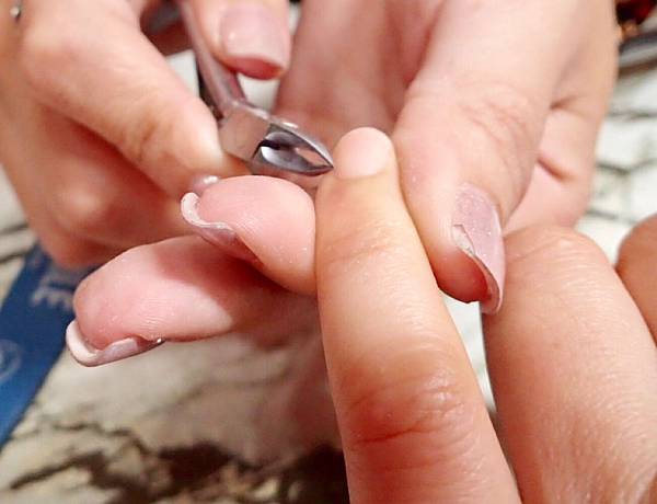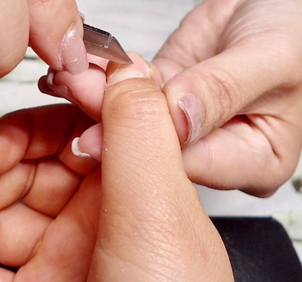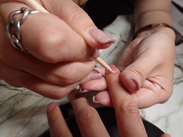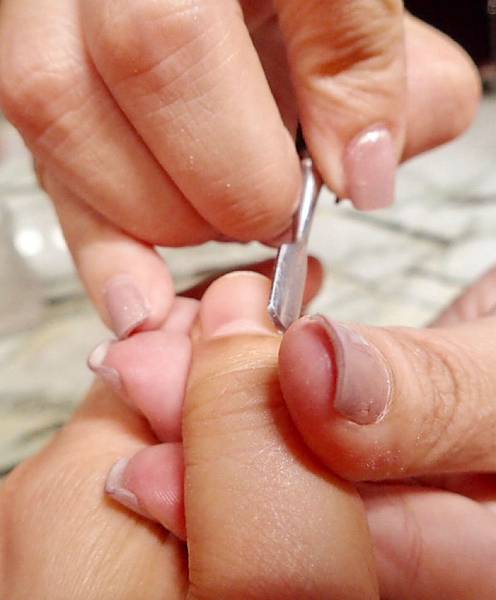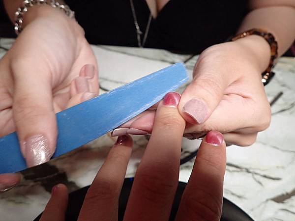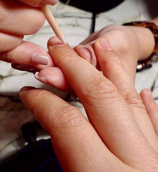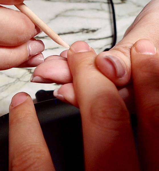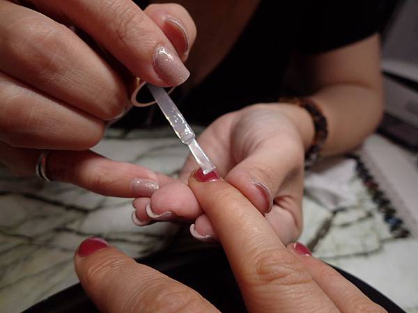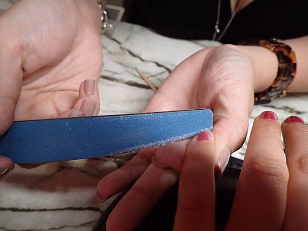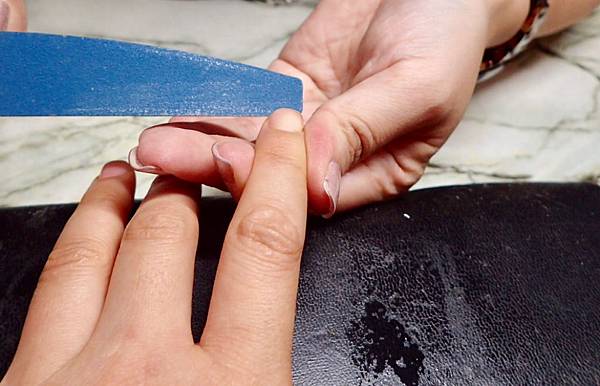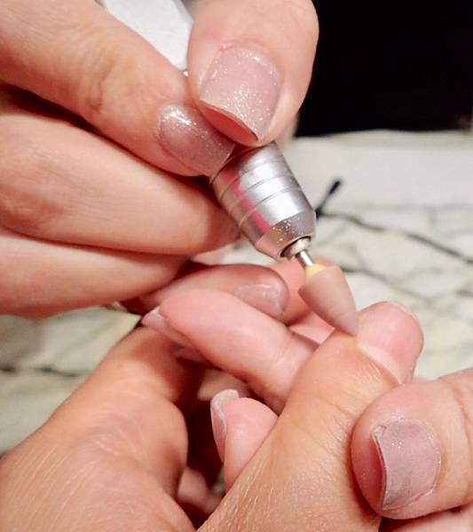 繼續用搓刀在修補小編指甲上的眉眉角角。