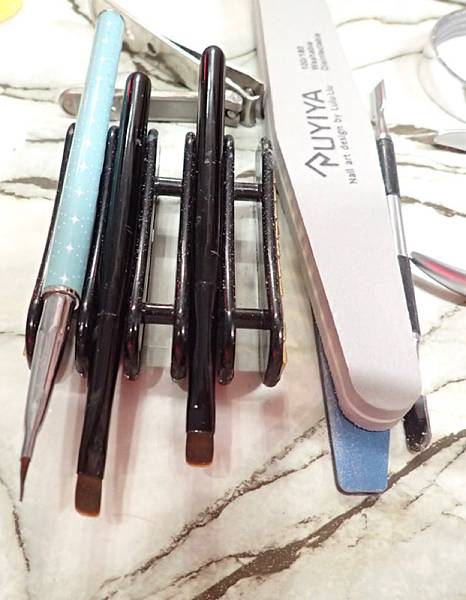 這是光療指甲所使用到的所有刷具與工具,刷具小編覺得很像上妝的刷具,米兒說,指甲的刷具毛都很好,上妝一定也很棒,可見米兒對自己的工具與客人的指甲的用心,小編也覺得那些刷具使用在指甲上,也不會有感覺,刷到外面時也不會不舒服,果然好的工具就會事半功倍,米兒的用心,小編一直覺得很棒。