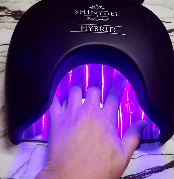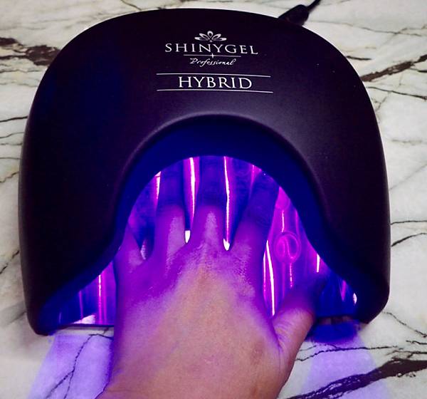 這是米兒的光療機,就是每上一層就要進去照光,光療可讓光療膠快速乾,而且不傷指甲,光療指甲還可以護甲,但是很費工,一開始保養上膠就好幾層,照至少四到五次光,然後上指甲油,只需兩次即可完成。