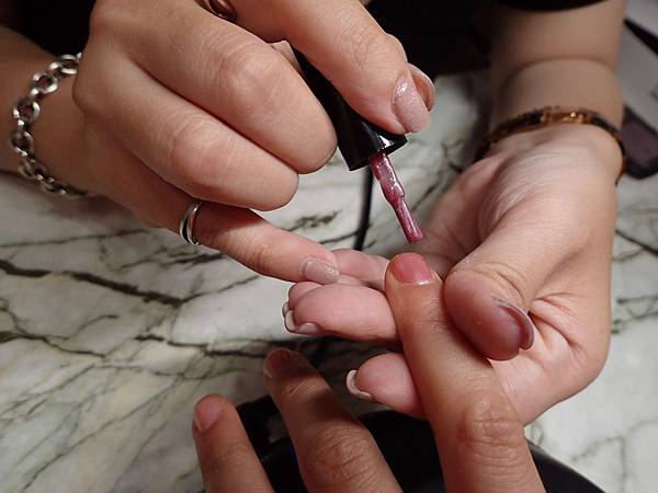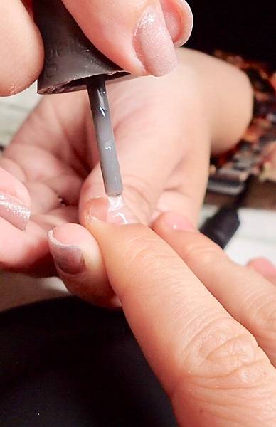 好美唷!單色指甲油上就有變化了,而不是就單一顏色,感覺有貓眼石的質感,指甲膠也讓指甲看起來有光澤與厚度。