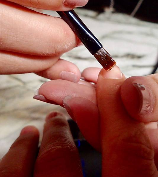 然後幫我上最上面一層膠,讓我的光療指甲可以更持久。
