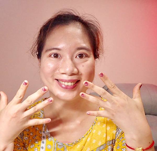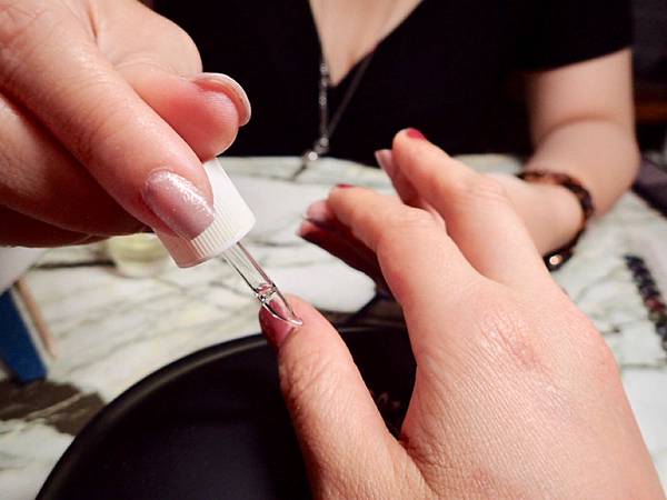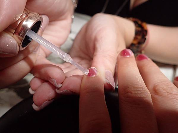 米兒幫我的十隻指甲都上一層指緣油。,完成了這次小編第一次體驗的光療指甲。