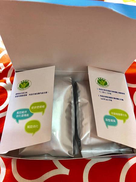 盒裝,裡面有兩個鋁箔包,鋁箔包設計很好撕開,撕開後會出現一小包一小包的益生菌,這個產品,請記得拿到就先丟冷藏唷!益生菌裡的菌種,都要在4度左右的溫度才是生存的最好時機,如超過40度,會把好菌都殺光。