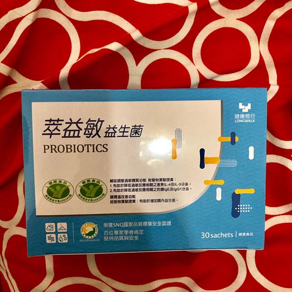 健康長行萃益敏益生菌30包/盒,這一小包,是市面上唯一榮獲健康食品雙認證 和 SNQ國家品質標章 的粉末包裝益生菌。