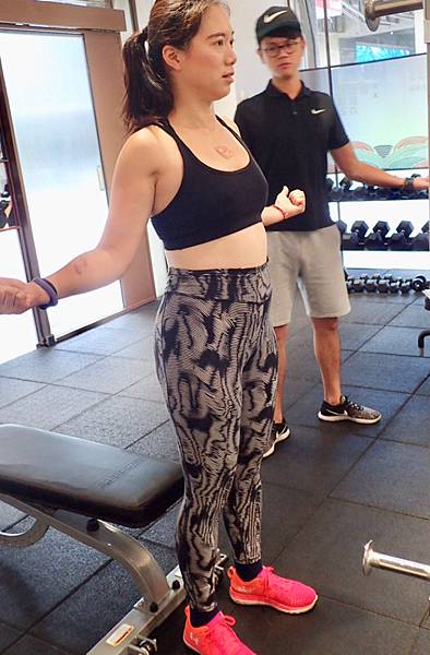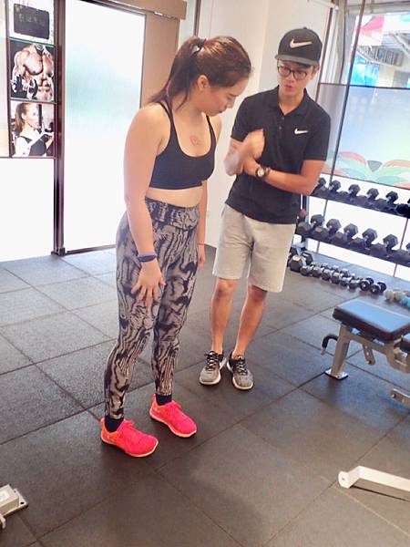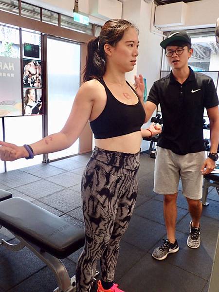Sam教練測試完之後,告訴小編,小編哪裡的肌肉不夠力,要多訓練哪邊的肌肉。