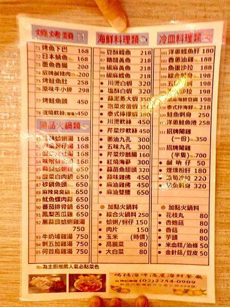 這一張兩面是喝桶海的菜單,他們的菜單菜色很多,而且幾乎都很好吃。