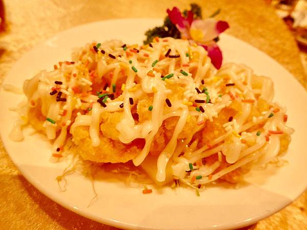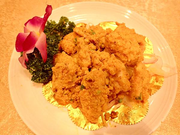鹹蛋黃的鹹味,搭配外面的皮,然後中間是中卷,Q彈好吃,鹹蛋黃炸到像零食一樣,中卷的新鮮度超讚,這道菜我也很少看到,這是一道對我來說很特別的一道菜,本姑娘也對味道比一個👍字!