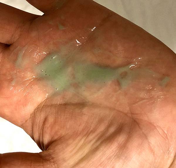 然後把手上的藍藻修護鎖水清爽凝凍塗抹在臉上。