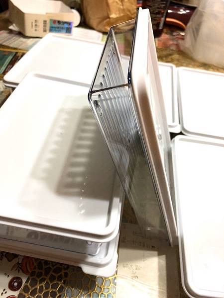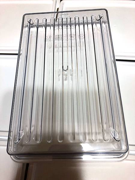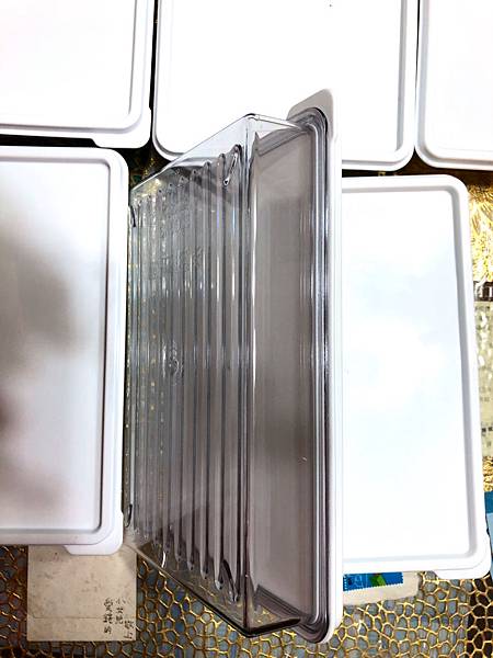白色的蓋子,而且挺密封的,不會讓其他東西的味道,跑進盒子內,所以可以安心裝蔬菜水果,也可以冰要冰的麵包跟餅乾,分裝與分類,超方便。