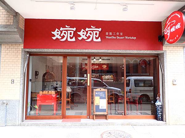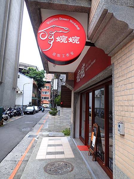 婉婉甜點工作室旁邊就是一個很有名的台北基督教長老教會的教堂,那個教堂很有名,我也有在那邊拍照過,婉婉甜點工作室的大門是落地窗方式的很漂亮,招牌是紅色的底,白色的字!