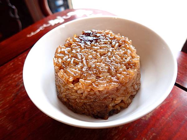 這一盤甜點米糕,讓我期待,因為我很愛吃甜米糕,甜米糕是用糯米做的,有些用糯米做的會黏牙,很討厭,但是這一盤古早味招牌黑糖桂圓米糕,不會很甜,黑糖淡淡的香氣配上自己自釀的米酒,搭配Q彈不黏牙的糯米,讓這個甜點呈現不一樣絕配的味道,還有裡面的桂圓也很多,桂圓很大片,很好吃。讓我一口接一口的吃。