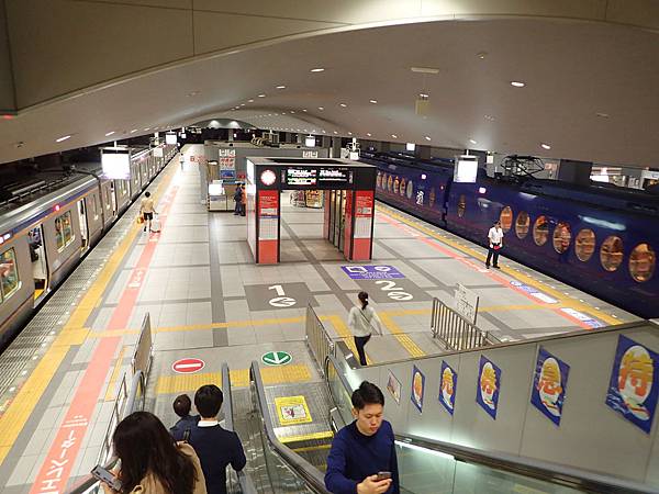 這是月台中間,這是各車的時刻表,日本地鐵月台中上也好簡潔,地板也很乾淨,月台上也很寬敞。