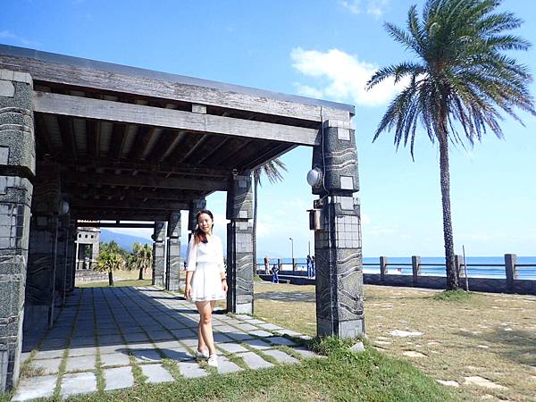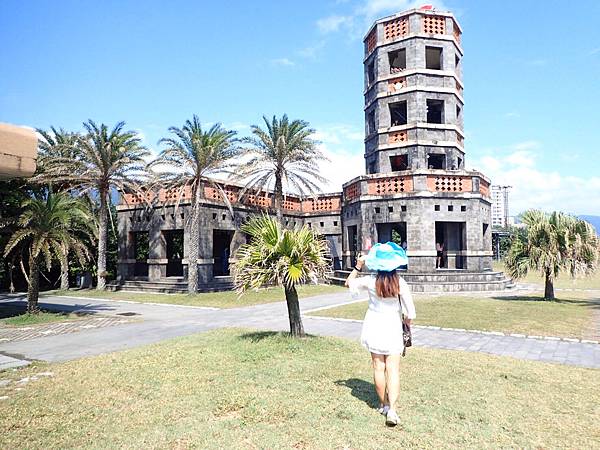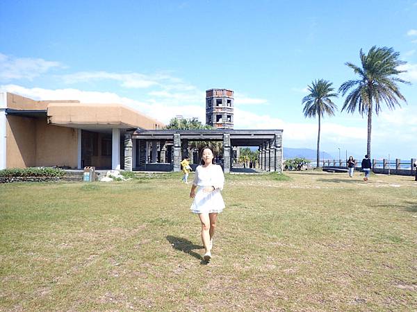 其實瞭望台周圍如遇好天氣,真的很美,藍天白雲,搭上遠方的建築,還有椰子樹,你不說在頭城,我真的會以為在哪個國家的南方小島上,拍起照來真的很美。