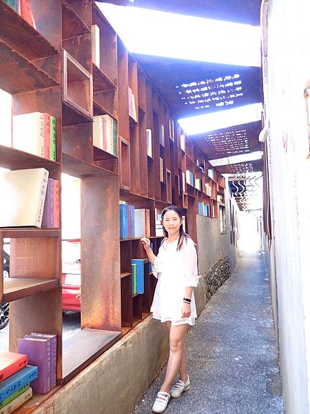 頭城老街打造成一個文藝之城,因此也有很多裝置藝術,都以文藝跟書為主,這區打造成看書,文人fu,牆壁還寫著中庸之道,彩繪牆壁上也畫有老子。