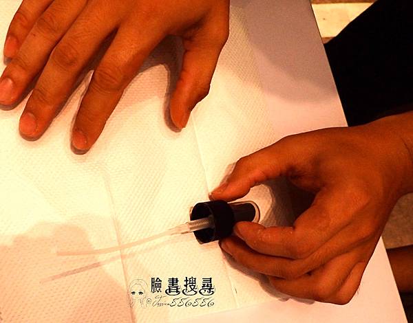 清潔完後,把瓶身倒著放在紙巾上,酒精會揮發,多餘的也會因為這樣而流出,噴嘴也放在紙巾上,酒精揮發很快,靜置3-5分鐘即可開始製作。