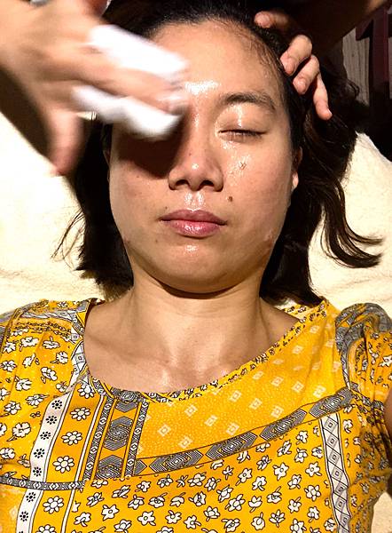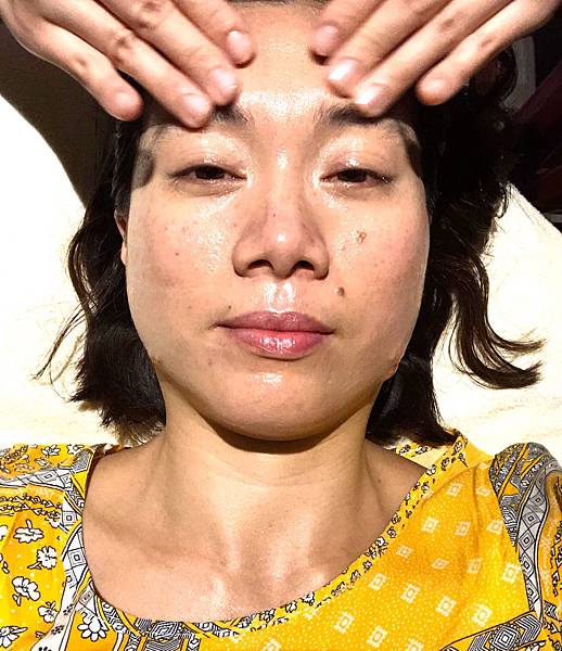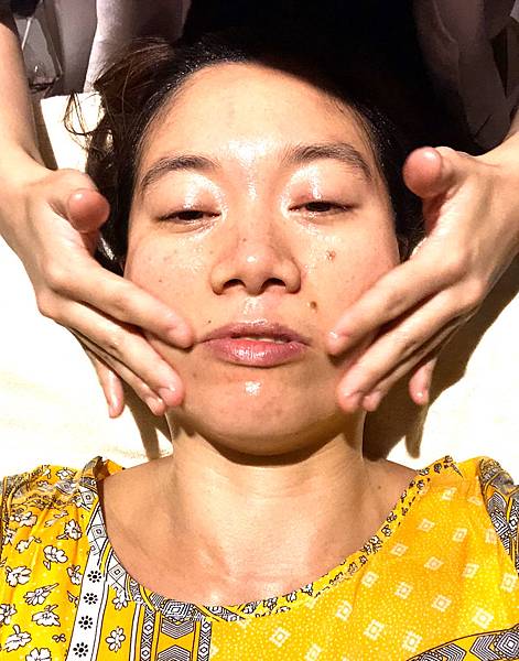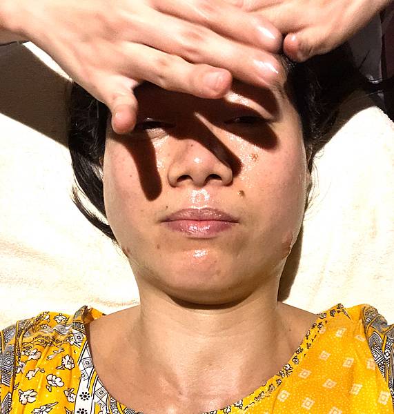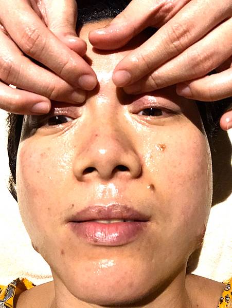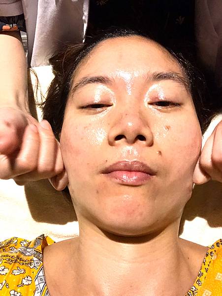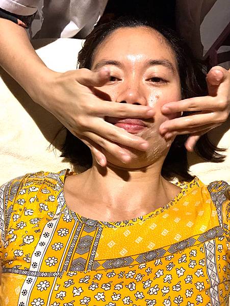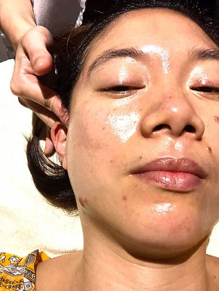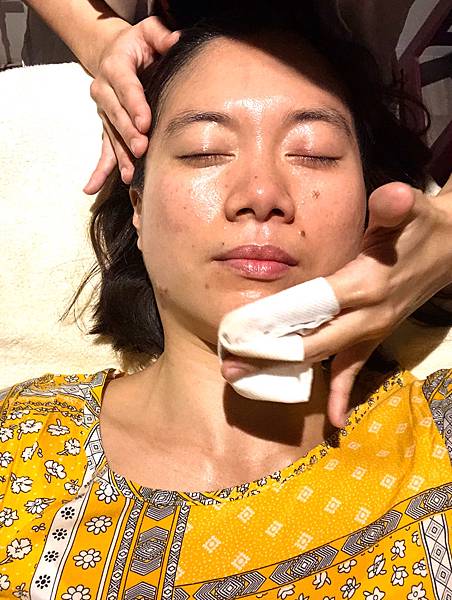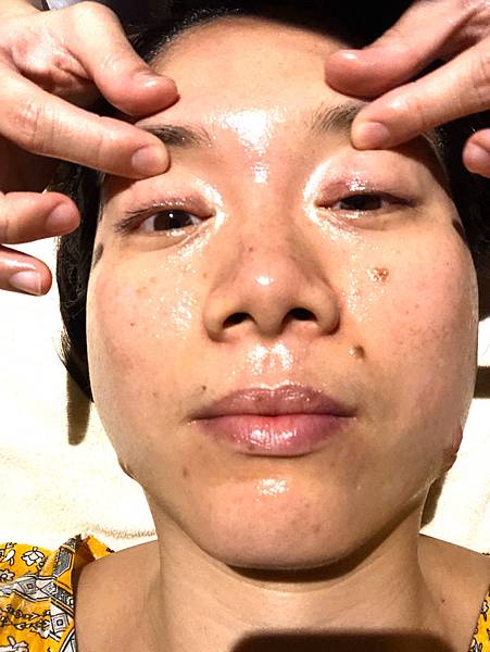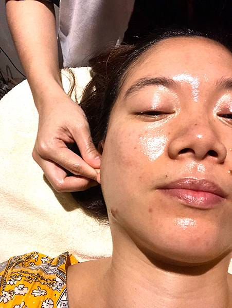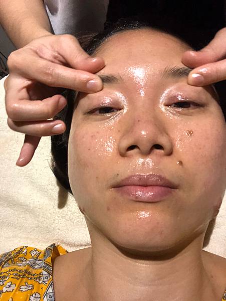 但是我錯了,美容師說,這是先勻油,先把這活膚E油先讓臉部吸收,等會才是正式的按摩,😂😂!這樣講完,我真是敗給自己的天真了。