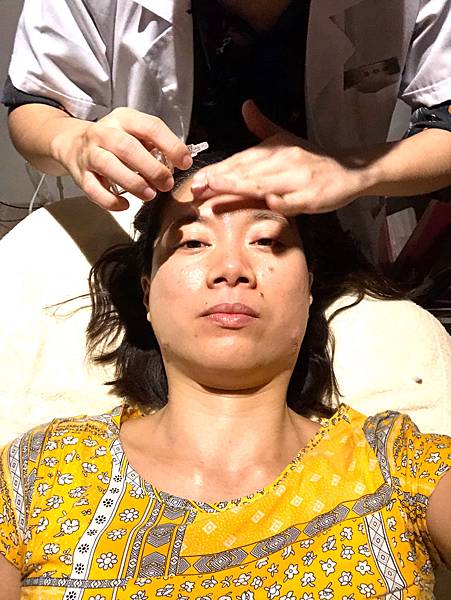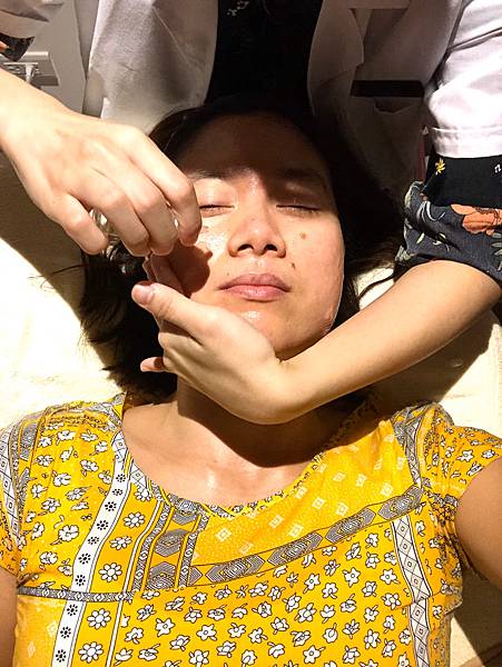 因為Jessica的肌膚偏乾,所以在幫我按摩前,美容師先幫我導入保濕的安瓶。