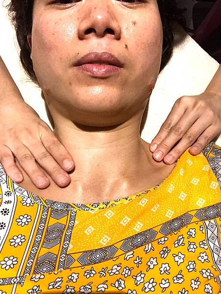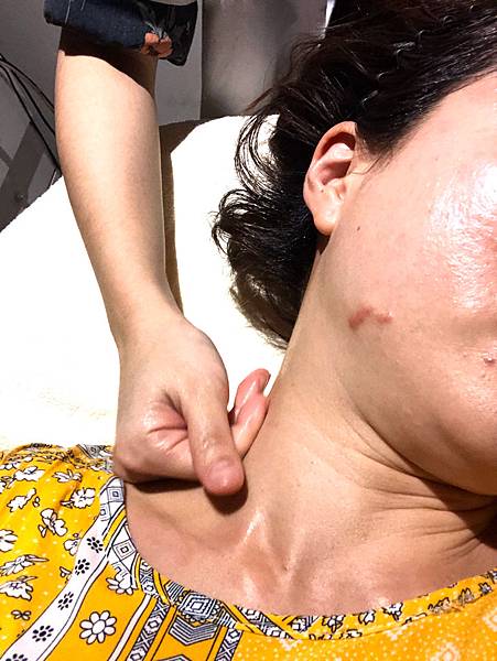 一邊肩頸按摩完,換另一邊,哇!我都舒服到快睡著了,只有有些地方超有感,因為那就是我堵塞的點。
