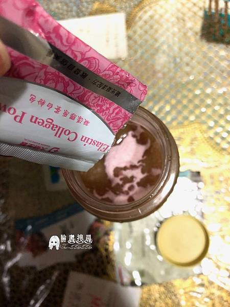 我習慣吃法是泡在水裡面,因為我不愛單吃的感覺,我所有的膠原蛋白粉都習慣往茶或咖啡裡泡。