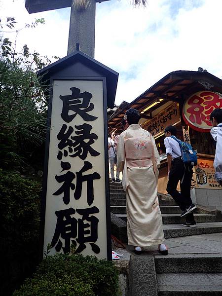 沿路走往清水寺的街道上,都看到很多漂亮的女孩兒,穿著傳統的和服,站在路邊聊天,這樣的風景好美。