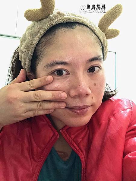 兩手按摩,由內而外、由下而上,輕柔的按摩臉部肌膚,順便拉提,在有紋路的地方多按摩幾次。