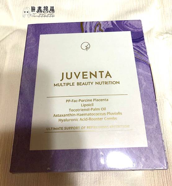 這是已經拆開膜後的包裝,金色字體,感覺質感就超好,不愧是頂級的包裝,哈哈哈!!白色的底,加上紫色的外框,看起來好舒服唷!!