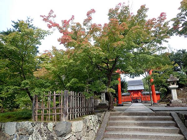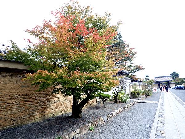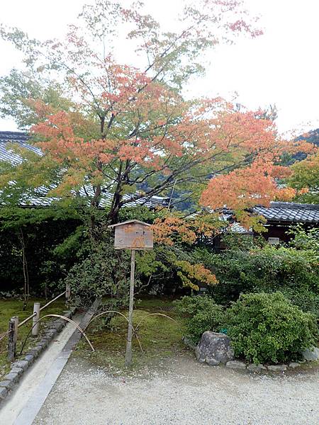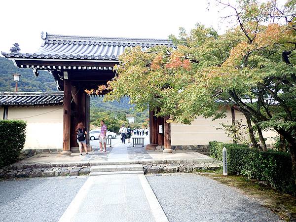 還要經過一個門,這裡有一些已經先轉紅的楓葉,嵐山區域應該比清水寺還要北邊吧!!因為這裡比較涼,還有楓葉轉紅的速度比清水寺那裡多,總之我也拍到一些紅紅的楓葉了,這有讓我欣慰一點,因為本來是想要11月來賞楓的,但天不從人願家人只有10月連假有空呀!!