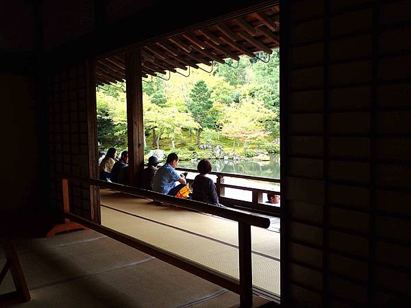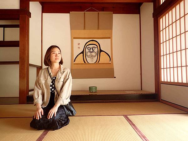 我們也很高興的在裡面休息,還有欣賞外面的美景,然後跟達摩拍照,這其實是早上的行程,先逛天龍寺要付費的地方,因為我們要趕去吃和牛,平價和牛,和牛文章,我改天在分享,下半段,我會介紹天龍寺外面,因為天龍寺其實很大,所以我們分上午跟下午一段時間來逛天龍寺,天龍寺只有裡面大殿需要付門票,其實外面是不需收費的。