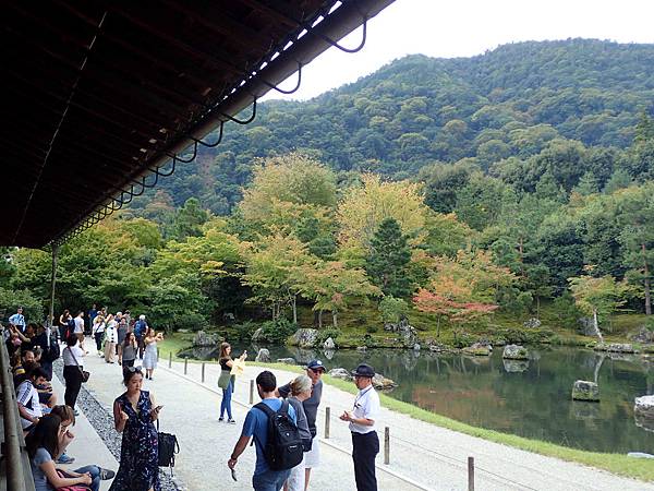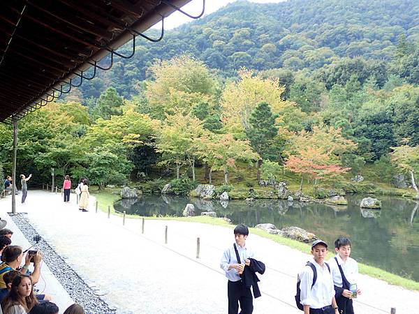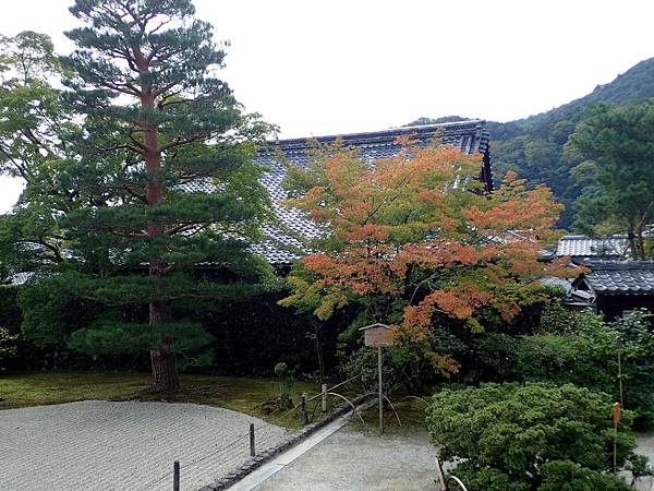 我們下午回到天龍寺,從這裡拍外面的枯山水與河面及旁邊的微紅的幾棵楓葉。