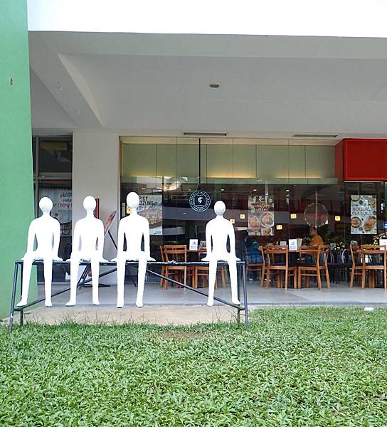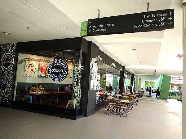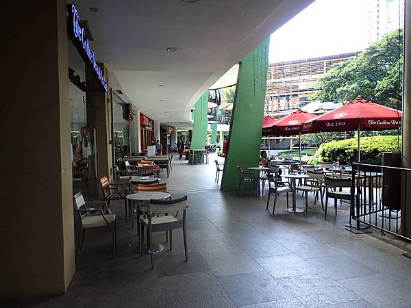 一樓的高度裡面(戶外)含戶內,有一些咖啡廳,還有一些餐廳,也有戶外區座位,但是還沒開門時,戶外區我們可以自己隨便做。但有些店家已經開門了。