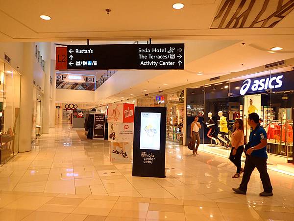 阿亞拉宿霧購物中心,屬於半戶外式的購物中心,我進來的地方連接飯店,而且菲律賓毒品很多,因此進入購物中心或者一些商店還有飯店,都要檢查包包,有時旁邊還有帶槍警衛,我進來這應該不是正門,但每個角落都有人在檢查,其實購物中心裡面也有警衛,有些品牌也會顧自己的警衛,在店裡。