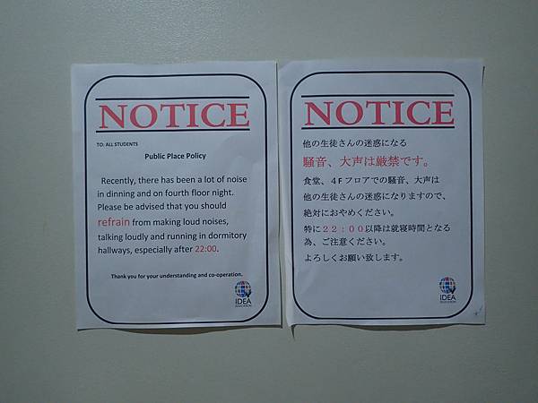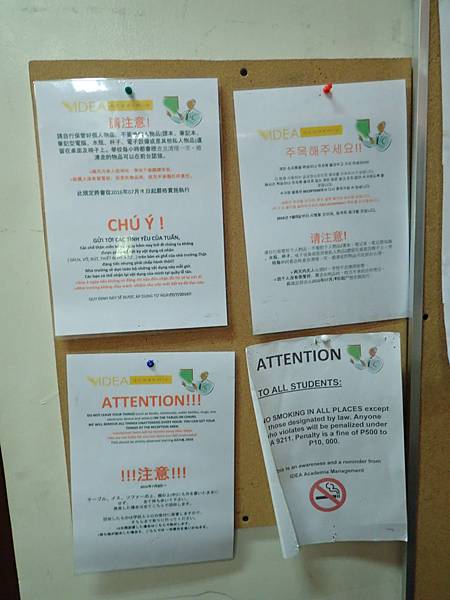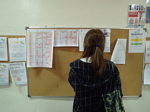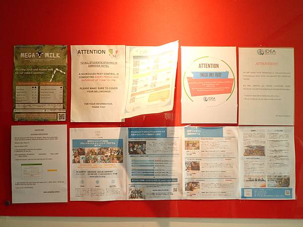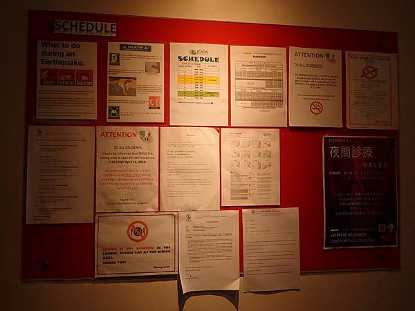 IDEA Academia學校也有設置學生看的佈告欄,佈告欄上的訊息很多,還有老師的課表與一些學生需要的資訊,其實真的很詳細,因為這所學校是日資的,所以佈告欄都以日文為主。