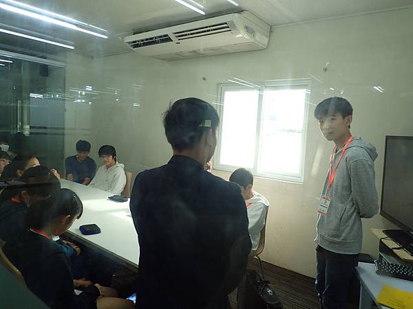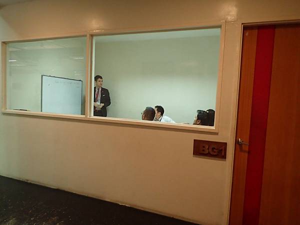 正在上課,門是透明的,可以看到裡面上課的情形。