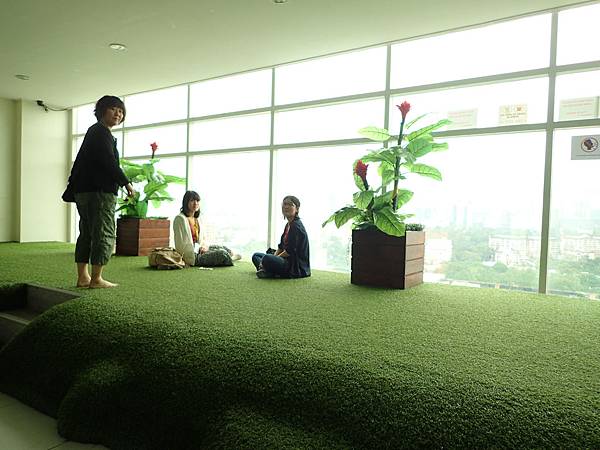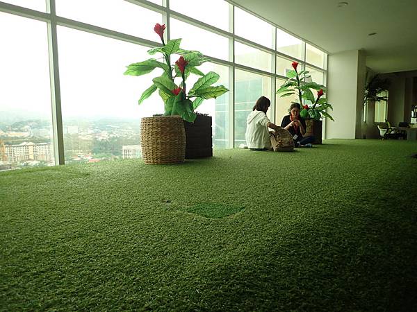 上來這個草坪要記得拖鞋,不能吃東西,上面可以聊天,也可以躺著休息。