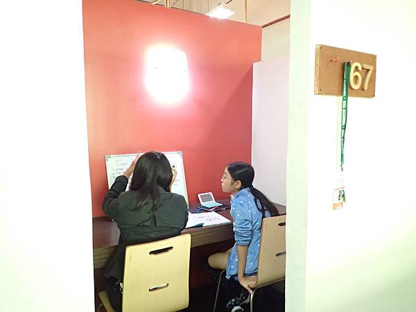 半開放式的一對一教室,雖有隔間,但沒有門,在裡面上課也不吵。