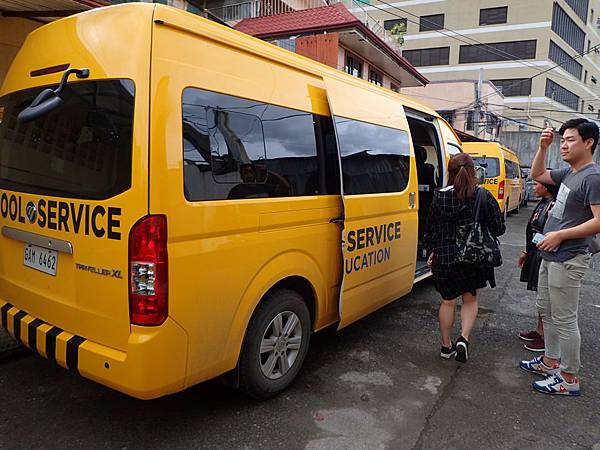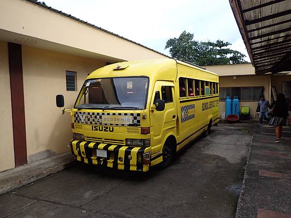 宿舍裡停留了一輛校車,這個校車會在早、晚固定時間開往兩間校區與sarrosa Hotel讓學生可以安全的上下課與往返住宿地點。