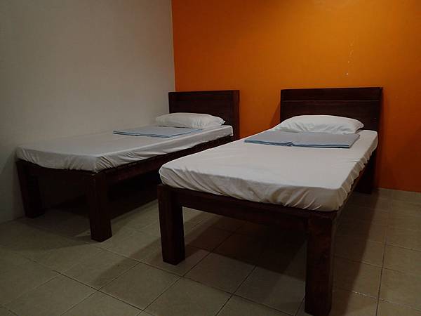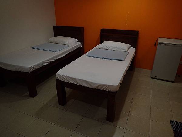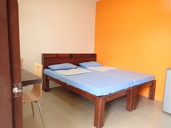 這間雙人間,床是連在一起的,這間可睡夫妻或者單人。